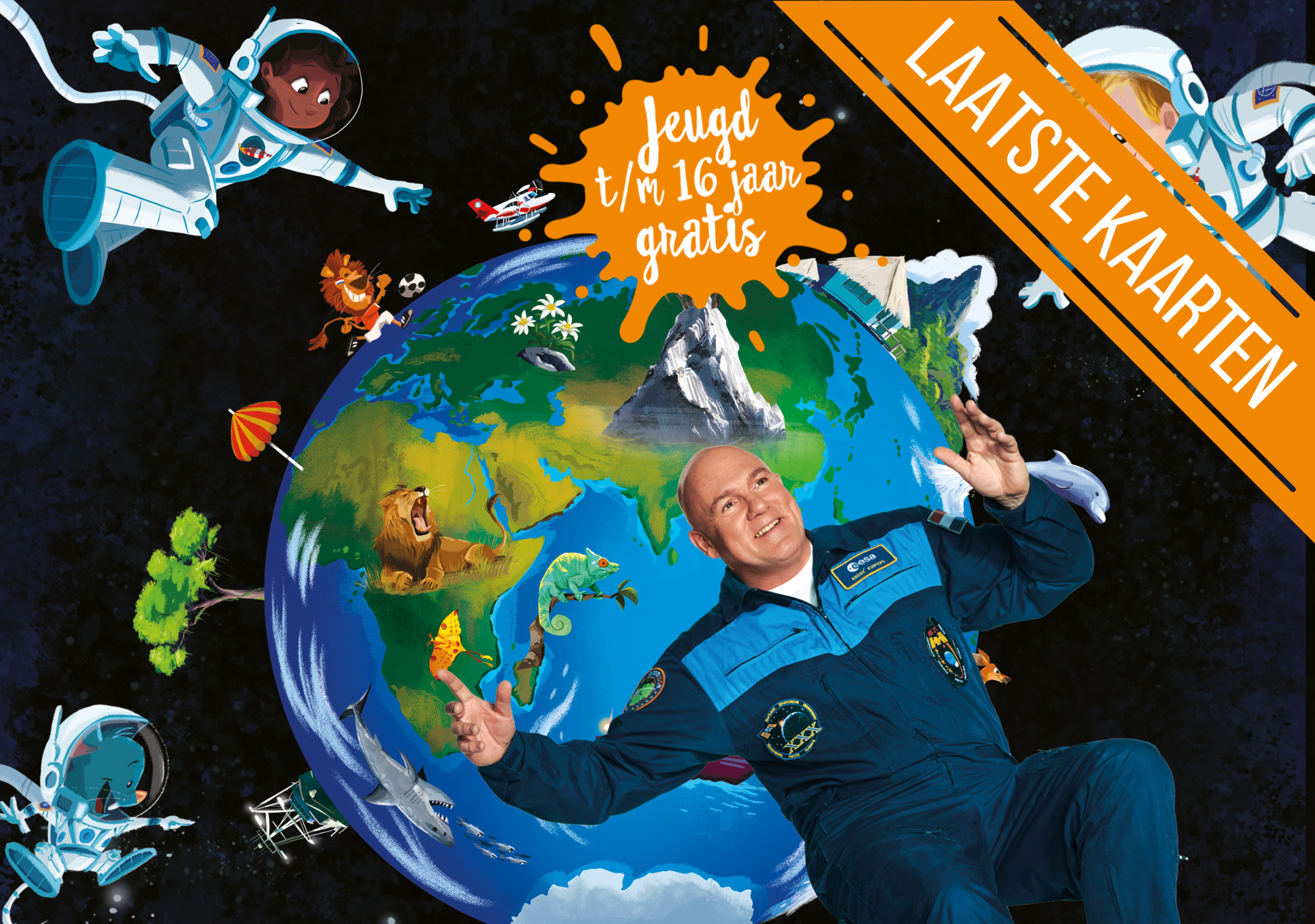 Wat zie jij als je omhoog kijkt? De zon, de maan, de sterren… Maar hoe ziet de aarde eruit als je van bovenaf naar beneden kijkt? In deze voorstelling kijk je mee met de blik van André Kuipers!